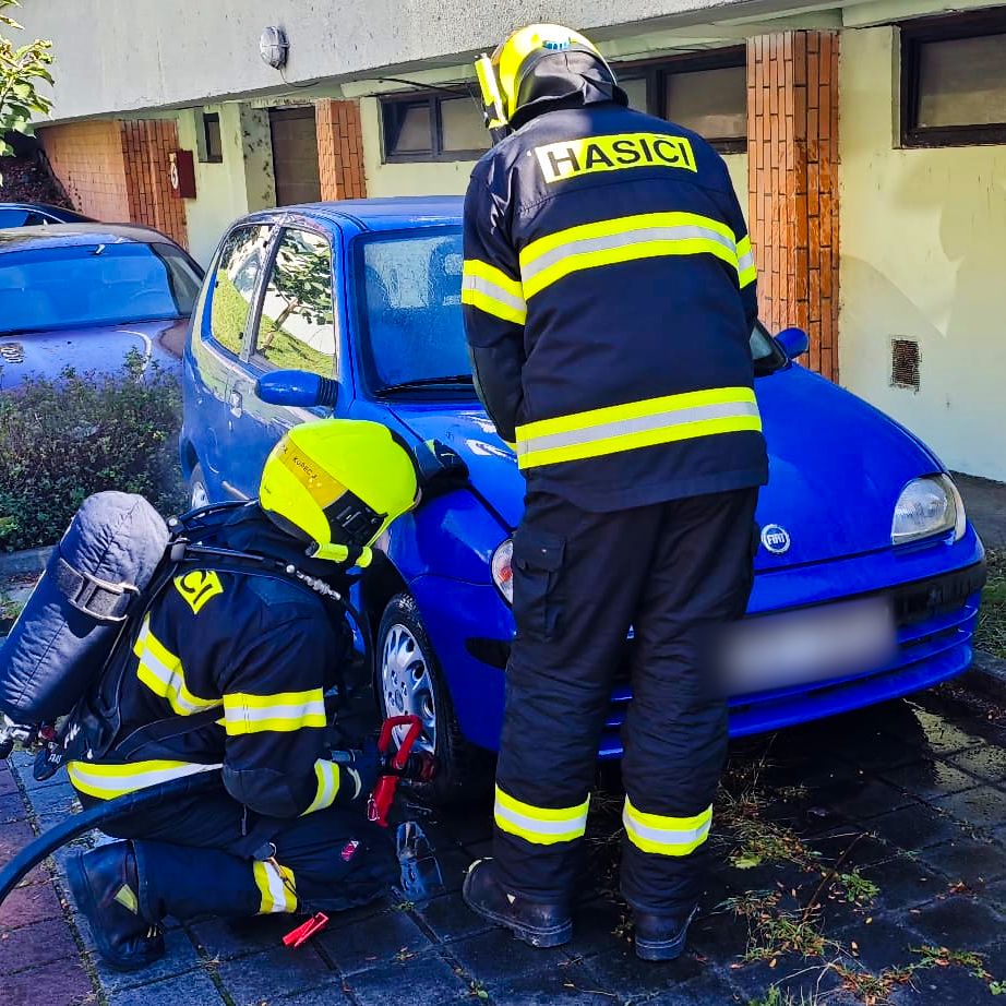 Když se podařilo otevřít vozidlo i kapotu, zjistili jsme, že se nejedná o požár, ale o technickou závadu chladící soustavy vozidla.