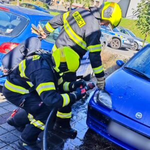 Když se podařilo otevřít vozidlo i kapotu, zjistili jsme, že se nejedná o požár, ale o technickou závadu chladící soustavy vozidla.