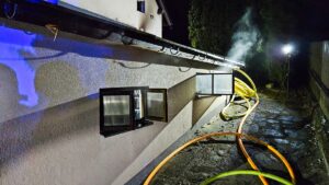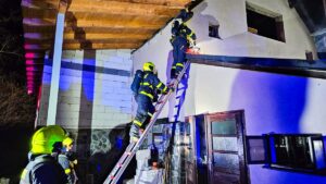 Po příjezdu prvních jednotek na místo bylo zjištěno, že plameny zasáhly prostory zděné přístavby vedle rodinného domu. Byly zahájeny hasební práce, přičemž zásah byl veden s cílem co nejrychleji ochladit vnitřní prostory a zamezit dalšímu šíření ohně. Vzhledem k silnému zakouření jsme k odvětrání vnitřních prostor využili přetlakovou ventilaci.