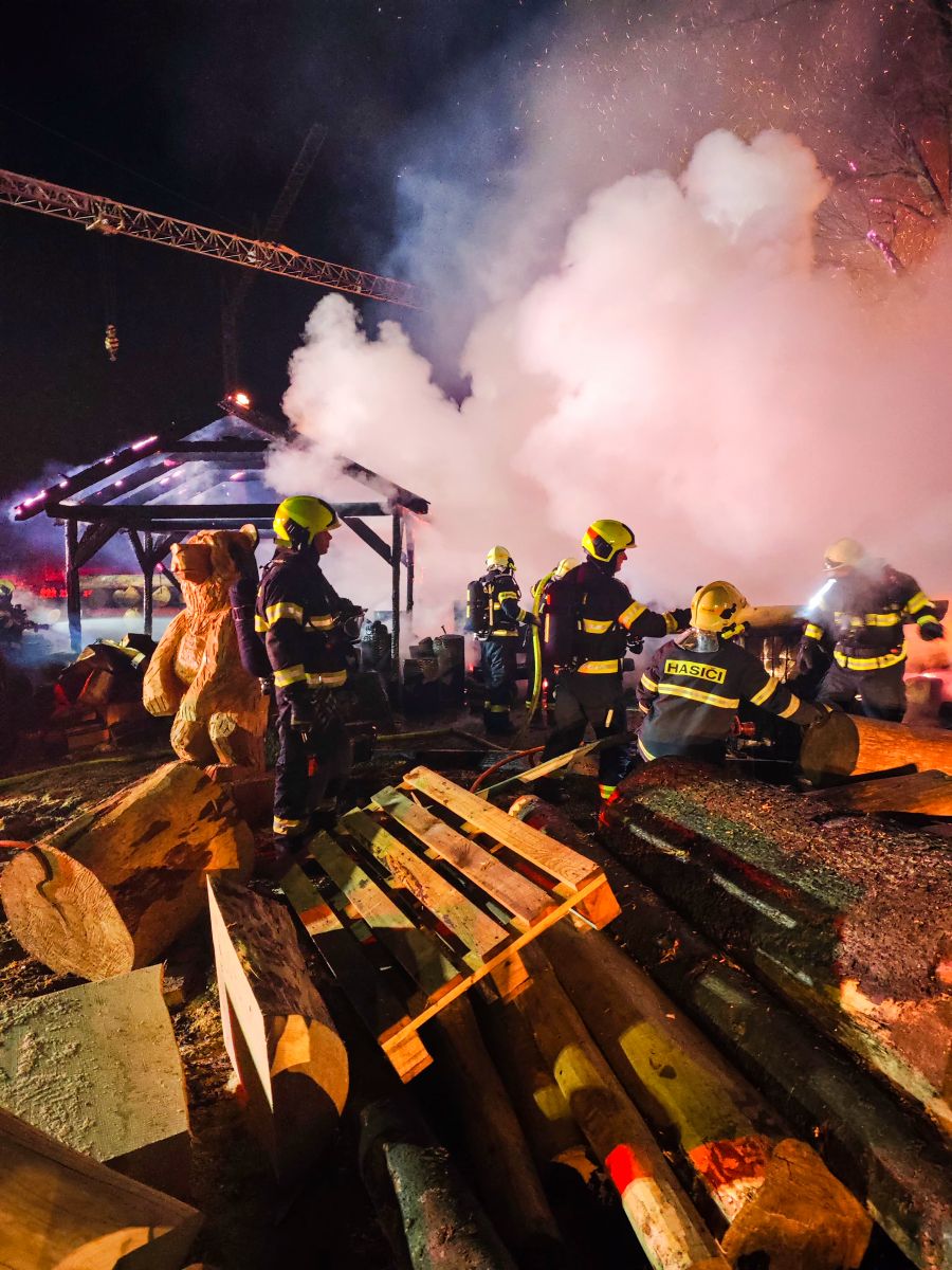 Na místě naši hasiči provedli osvětlení prostor pomocí osvětlovacího stožáru, vytvořili dopravní a útočné vedení a zahájili hasební práce s pomocí vyhledávání ohnisek termokamerou. Velkokapacitní cisterna zároveň sloužila k doplňování vody, pro čerpání jsme využili vody z přilehlého potoka. Na místě jsme zasahovali přibližně dvě hodiny.